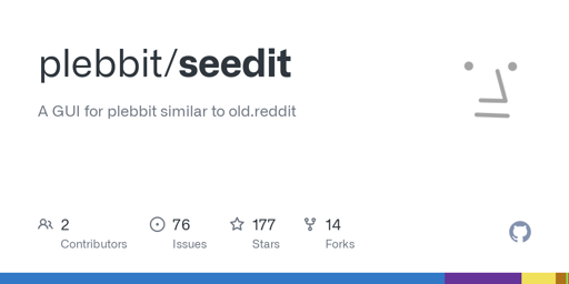 Seedit is a serverless, adminless, decentralized reddit alternative. Seedit is a client (interface) for the Plebbit protocol, which is a decentralized social network where anyone can create and fully own unstoppable communities.