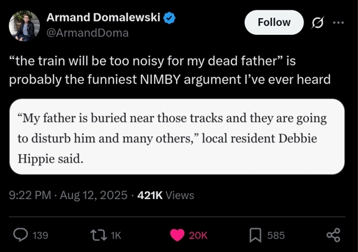 Hah! Maybe tell them that’s why Jesus isn’t back yet, not enough trains!