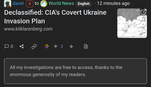 It’s a blog post that uses a 1957 CIA invasion plan of Ukraine to frame the conflict in a very one-sided manner (ie. the CIA put Ukrainian nazis in power who then indirectly burned pro-Russian protestors to death in the Union House Building)