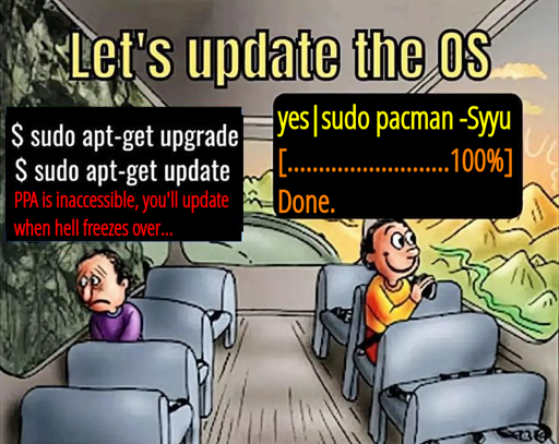 yas an option to uppercaseSalready exists to update the database,--noconfirmexists to continue without user confirmation.Pacman has the worst CLI flags I’ve ever seen.