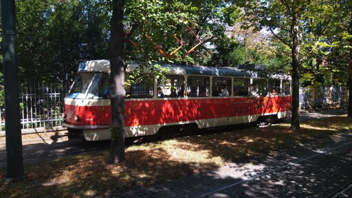 I ❤ Prague’s ubiquitous trams. This one chugging uphill in Hradčany.