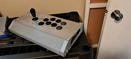 3d printed custom arcade stick i made to use at the local bi weekly guilty gear strive and street fighter 6 brackets.