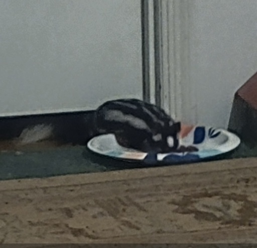 Last night the skunk (Juan Pablo) crawled under her bedroom door, then seconds later 3 baby skunks 🦨 followed.