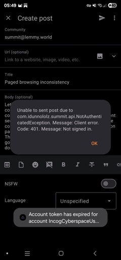 I actually tried to post several times, and each time, I was logged out of that account and the account disappeared from the users list. I had to add it to the list again by entering my credentials. Then I tried to post again, same thing.