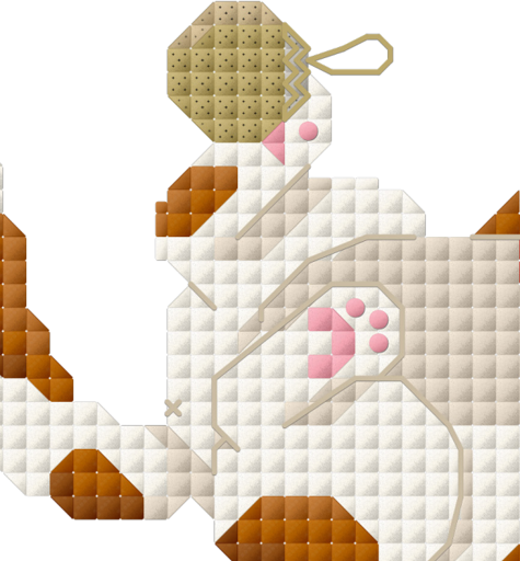Edit: After staring at the pattern for a while, one thing I noticed is under the French knots, it lists the black for the eyes, and another colour E5200… looking at the pattern I cannot see a single spot where the E5200 French knot is used… Do you think there is a mistake in the pattern, and the E5200 is meant to be the pink circles for the paws?