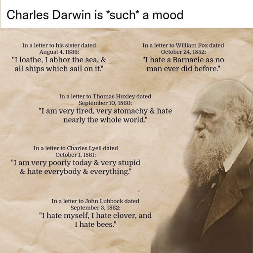 In some ways, figures like Darwin and Attenborough are my heroes, so it’s nice to see that these men are human and share similar distastes for fucked up shit as me.