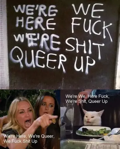 minus-squaregermanatlas@lemmy.blahaj.zonelinkfedilinkEnglisharrow-up66·3 months agoQueer Up sounds like something we might say to the only cishet person in the friend group
