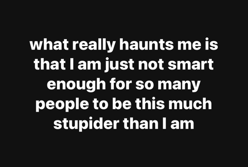 Not true, because a fuckton of those stupid people erroneously believe they’re smarter than everyone else in the world. The number of times I have heard “if I were in charge, everything would be straightened out” from these troglodytes is too damn high. I’m actually smart enough to know how insanely demanding “being in charge” and “doing things right” actually fucking is so I god damned know I am not up for the challenge so, yeah, actually they’re still actually fucking stupid. Sorry, not sorry.