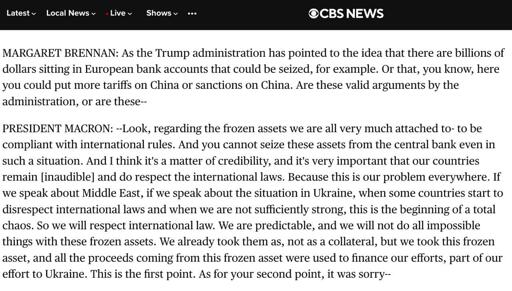 arrow-up161arrow-down1imageMacron: The idea of confiscating Russian assets is a violation of international law and "the beginning of complete chaos."lemmygrad.ml☆ Yσɠƚԋσʂ ☆@lemmygrad.ml to World News@lemmygrad.mlEnglish · 2 months agomessage-square19linkfedilinkfile-text