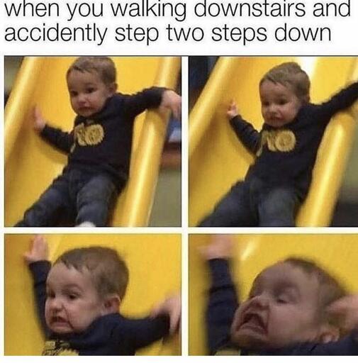 I would say the opposite: when you are one step from the bottom of the stairs, but you think you are at the bottom of the stairs.