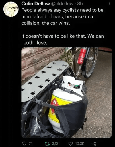 Hypothesis: this is actually a safer way to ride due to cars seeing you as much more of a threat and therefore giving you MUCH more room than normal.