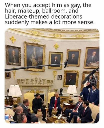 Also I don’t think he paints his living spaces in Gold because he’s queer. I think he does it because he’s an arsehole who wants to appear like a Pre-revolution French Monarch or Middle Eastern Dictator. He’s extra in that sense and queer in the sense he has no picture in his Grindr profile and randomly sends twinks dick pics when he’s not on the Deep web.