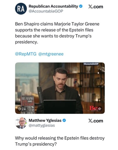 It should be, but that’s not what Republicans care about. They care about hurting people - especially leftists and minorities. And Trump promised that the Epstein files would hurt Democrats. Anything else they can justify away as being the fault of Democrats somehow.