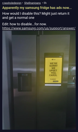 arrow-up1816arrow-down1imageRefrigerator ads are finally here!discuss.onlineByteOnBikes@discuss.online to A Boring Dystopia@lemmy.world · 23 days agomessage-square319linkfedilink