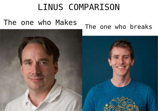 Erik L. Midtsveen 🏴🌈@lemmy.wtf to linuxmemes@lemmy.worldEnglish · 15 days agoLinus Comparisonlemmy.wtfimagemessage-square147linkfedilinkarrow-up1819arrow-down150