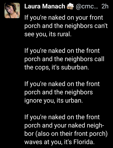 Idk that sounds more Oregon than Florida. Florida is when you’re naked on your front porch and your naked neighbor offers you meth