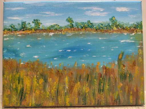 Scene I painted at the lake the other day, Acrylic on 8x10 canvas