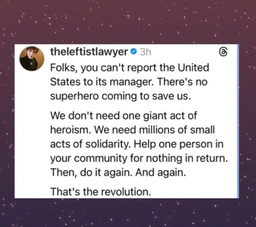 - and organise. otherwise it’s just some small acts of kindness (which is good) bu not a revolution