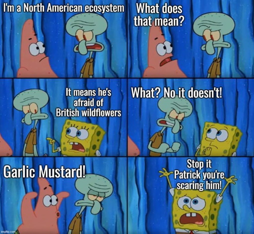 Very true, however in this case I figured the meme provided the appropriate context of North American ecosystems vs British wildflowers and the specific example of garlic mustard