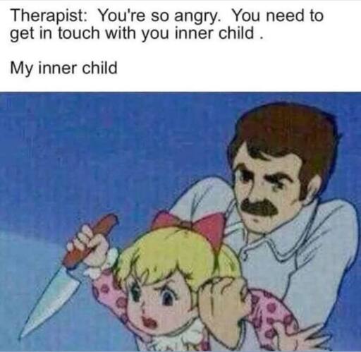 My inner child is crying in the corner like a scared kitty, my future self is in the 4th dimention (cuz block universe theory and time is non-linear, get it) looking back in time and disappointed in me.