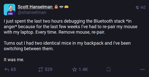 minus-squareBootLoop@sh.itjust.workslinkfedilinkarrow-up38·4 days agoThis is the user who submits bug reports to my projects.
