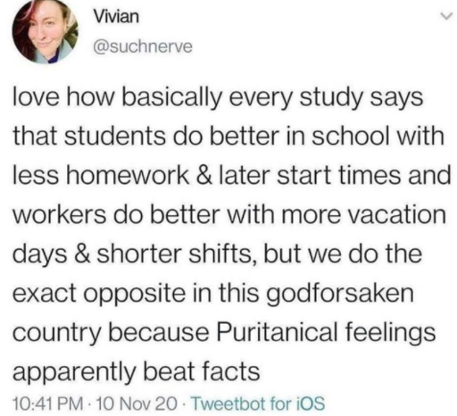 stupidevil they could make a lot more money.here they staggered all the school start times so parents with lots of kids can spend their entire day dropping off and picking up kids. we’d just have them walk or bike (and i’m fine biking there, there’s a bike lane), but some idiot decided to build these schools on their own little complex a mile down the highway (speed limit: 65mph/105kph)