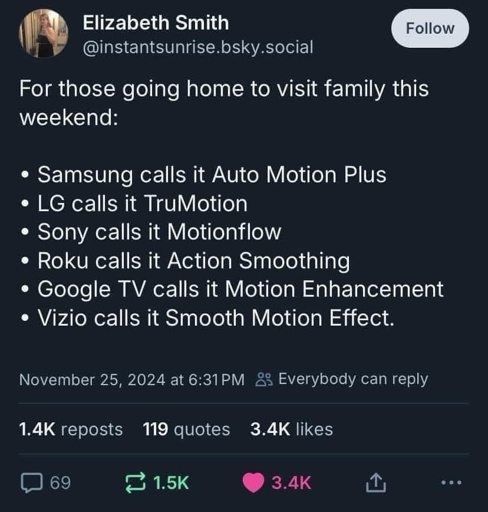 minus-squareTʜᴇʀᴀᴘʏGⒶʀʏ⁽ᵗʰᵉʸ‘ᵗʰᵉᵐ⁾@lemmy.blahaj.zonelinkfedilinkEnglisharrow-up3·4 days agoI’ve been exposed to a smart TV only once in my life, and I hated the experience so much 😅