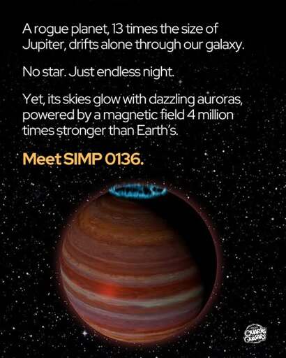 This planet would have great aurorae if it were near a star, but it’s not, so the magnetic field strength is kind of a moot point.