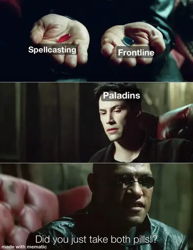I do so love my magic tanks. I played sorcerers and wizards for like a decade before finally deciding to try a paladin, and oh good Lord was it fun being able to actually just slap a mfer