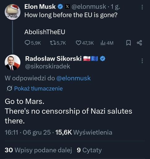minus-squareooli3@sopuli.xyzOPlinkfedilinkarrow-up12·5 days agoX just received a fine of 100+ millions for disobeying the EU laws. Musk political sense go as far as his wallet