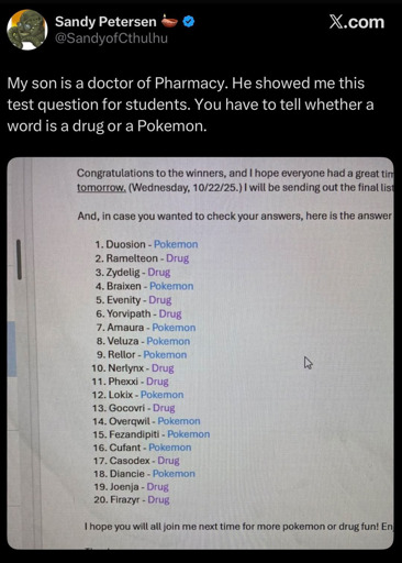 minus-squaremoobythegoldensock@infosec.publinkfedilinkEnglisharrow-up37·21 days ago“Congratulations on the winners, and I hope everyone had a great time[…]I hope you will join me next time for more Pokémon or drug fun!” Yes, this was definitely the final exam and not a trivia game.