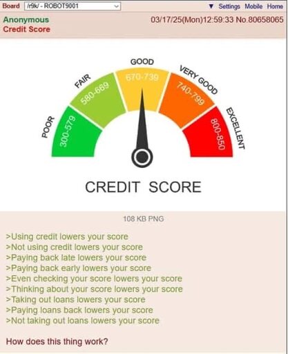 arrow-up1778arrow-down1imageAnon tries to understand credit scoressh.itjust.works🍹Early to RISA 🧉@sh.itjust.worksM to Greentext@sh.itjust.works · 16 days agomessage-square250linkfedilink