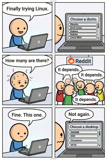 One character in the second panel has an eyebrow, the others don’t. The line-weight on the eyebrow doesn’t match the rest of the comic. That character has its mouth open, but the speech bubble isn’t connected.