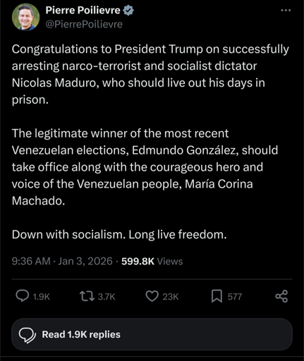 If the US actually succeeds (huge if, they control exactly 0.00% of Venezuela right now), this is will crash the Albertan economy into the earth’s core. And Albertans will, somehow, blame the Liberals.