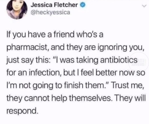 ickplant@lemmy.world to Science Memes@mander.xyzEnglish · 4 days agoLife pro tip for friends of pharmacistslemmy.worldimagemessage-square174linkfedilinkarrow-up11.21Karrow-down114