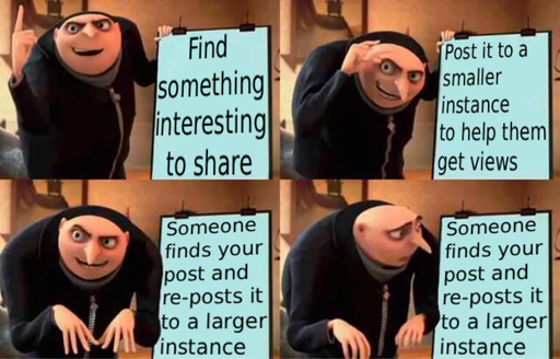 But the post on the big instance is not helping the small instance grow, which is why they put it there. Over-centralization isn’t desirable.