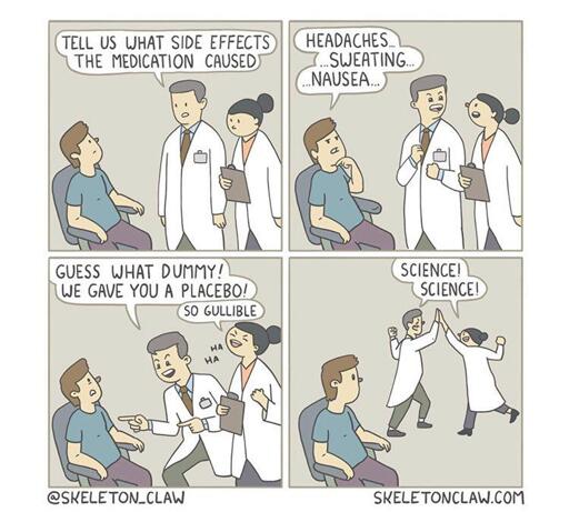 Sometimes I think about the opposite where a patient is given placebo and then is cured. Imagine living the rest of your life knowing for certain that your body could cure whatever ailment it’s going through but it’s like naaah