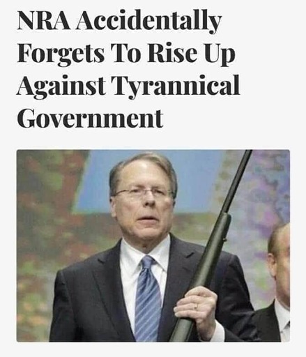 Ya’ll the NRA basically doesn’t exist anymore. They were all for trump but they embezzled themselves into nothingness.