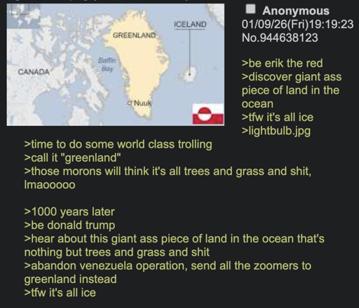 If the US does take Greenland im gonna bet Trump will re-name its something stupid:
