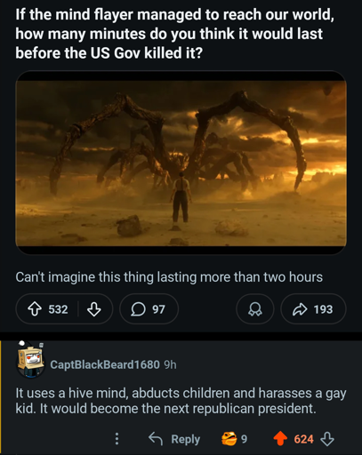 If there was a mind flayer plus like 2 demigorgons, the humans in the battle would have been screwed. The mind flayer is somehow weaker than the low level grunts?? Just like US presidents??