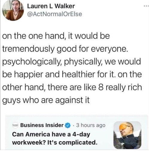 Or alternatively, we can keep saying it’s complicated and/or doesn’t make sense, and you can enjoy record breaking wealths of a few that will make headlines while the life expectation, education level, overall population health keeps going down and poverty keeps going up… until one day, it catches you!