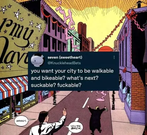 Danny the street. A sentient, mobile, non-binary, urban street comic book character from Doom Patrol who communicates via various features of the street like posters, signage, vent steam, etc. Why is that weird?