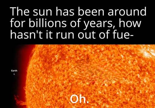 I initially thought this meme was like Pacman, the Sun needs more fuel, must gobble gobble