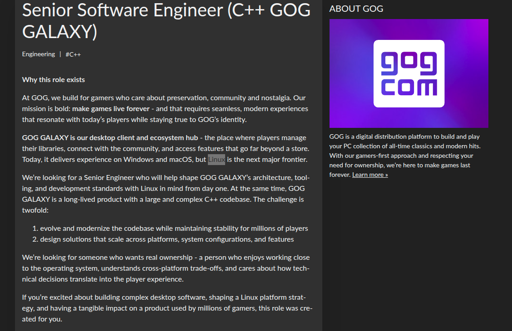 “I saw here that the use of AI is required. I’m willing to compromise and use AI for some workflows, but I’m skeptical of wide scale adoption. I think its potentially bad for the long term code base maintenance and stability, which is what GOG is founded on. If I find that it’s truly helpful in code writing, then I’ll continue to work it into my larger workload, but do keep in mind that the Linux community as a whole is more technical than other OS consumers and this will be bad PR.”
