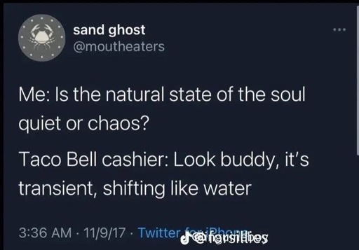 I feel like this topic somehow aligns with the form of a 2017 Twitter screenshot posted on tiktok posted on Lemmy.