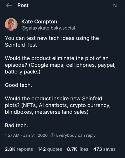 arrow-up11.09Karrow-down1imageJust ask, "Would Kramer be convinced to get into this?"lemmy.worldAutistoMephisto@lemmy.world to Microblog Memes@lemmy.worldEnglish · 5 days agomessage-square137linkfedilink