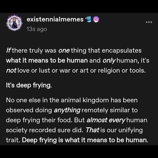minus-squareSpruceBringsteen@lemmy.worldlinkfedilinkEnglisharrow-up7arrow-down1·8 days agoI’d argue barbeque. Cultures the world over have some form of cooking things slow, frequently underground to break down tougher foods. Deep frying is a result of excess while some form of barbeque would have been a very logical step for anyone cooking on coals.