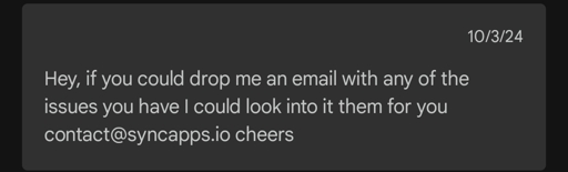 They last replied to a review on Google Play on 13th Jan 2025. Someone else also mentioned that they received a response via DM. So the developer is definitely still alive.