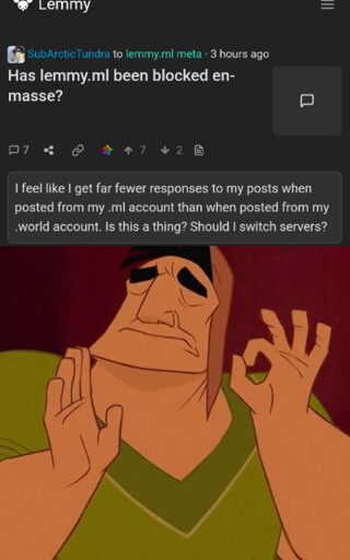 General negative sentiment to other instances who haven’t “seen the way” yet - https://lemmy.world/post/27426510