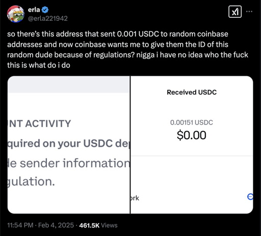 The automated systems used by Coinbase will immediately notice that you have interacted with suspicious or sanctioned wallets and Coinbase, which, like all crypto companies, spends as little as possible on customer support, will lock your account until you produce a passport for the person who sent you that tiny amount of money (often for months).